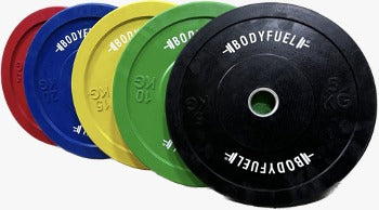 Our BODYFUEL BUMPER PLATES are strong, durable plates designed for any weightlifting or strength training routine. Made from rubber, they are configurable to any barbell and reduce noise for a quieter workout. They are also impact-resistant, so you can focus on your form without worrying about damage. These plates are made with an innovative design to ensure maximum safety and efficiency. Rubber construction makes them resilient and sound-reducing, so you can trust in their durability and have a peaceful workout.