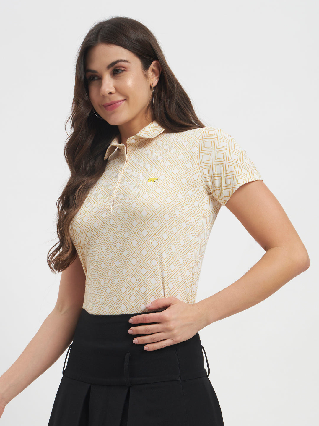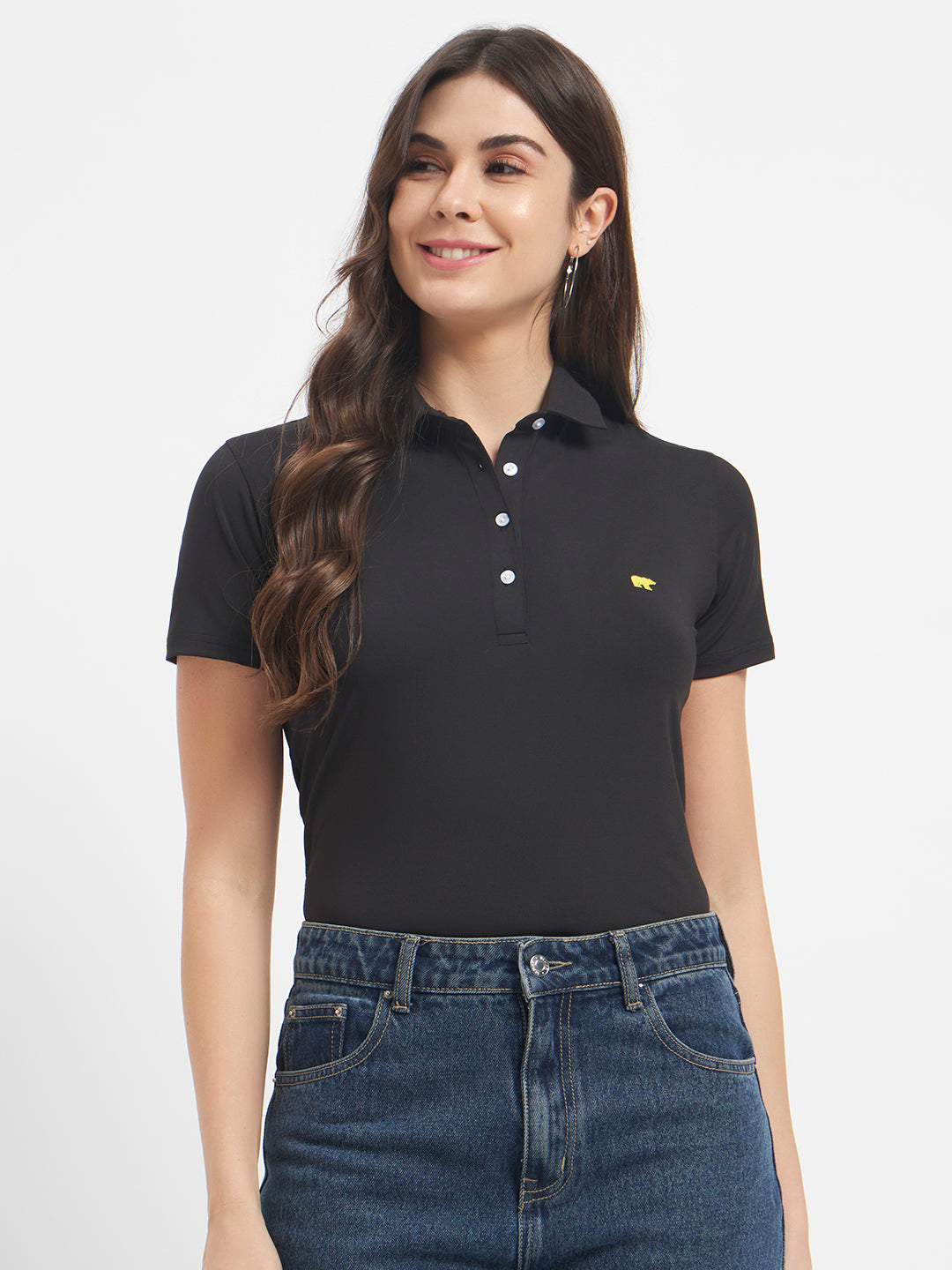 A small embroidered chest logo adds a refined touch, making this polo a versatile piece that pairs effortlessly with skirts, jeans, or shorts.