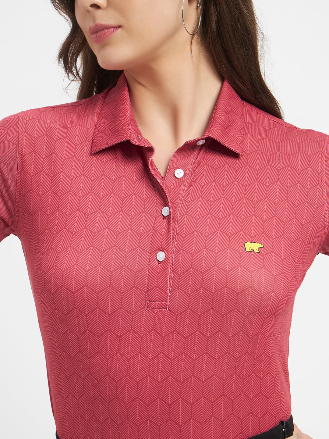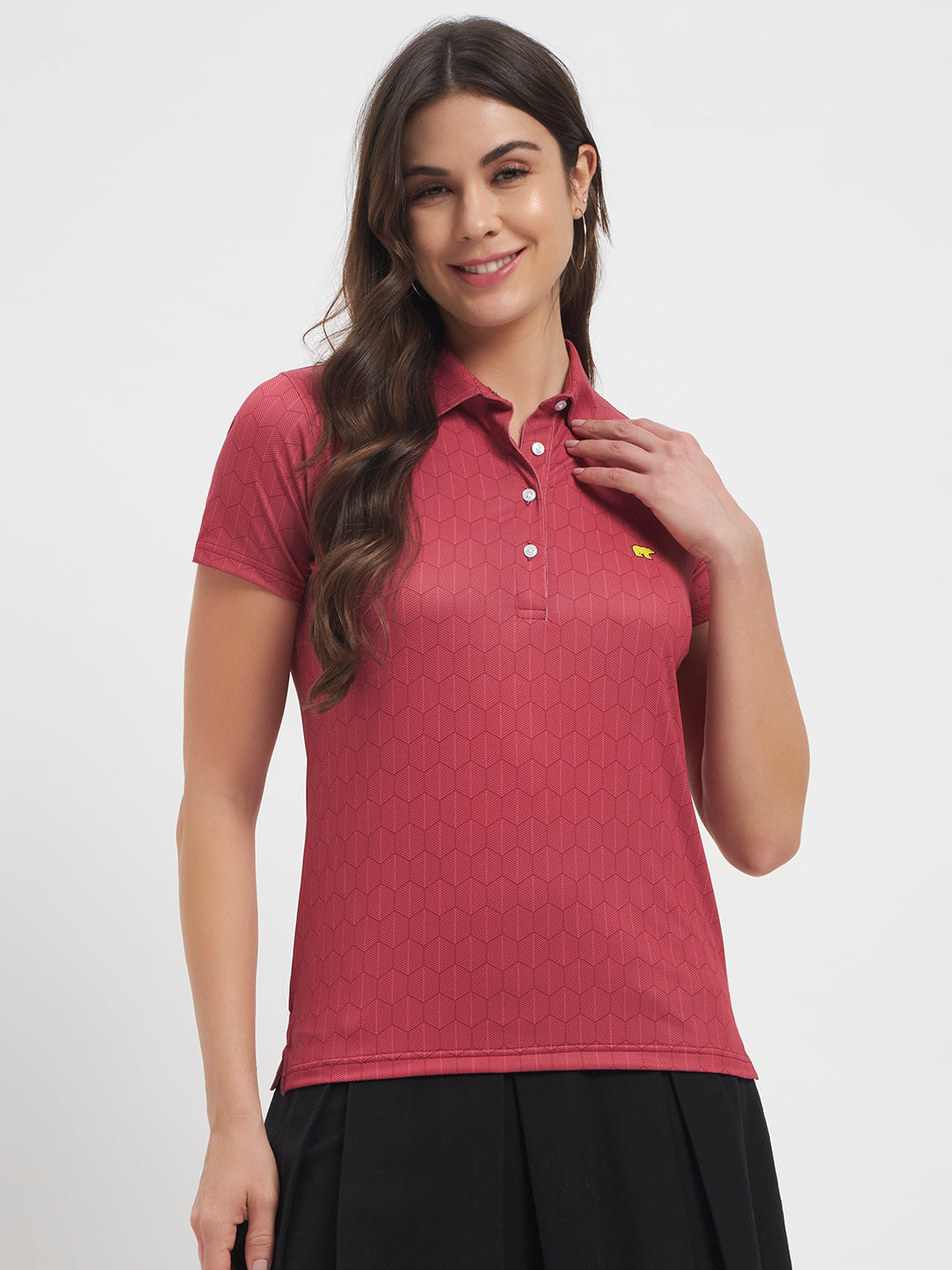 Upgrade your everyday wardrobe with this stylish patterned polo T-shirt designed for comfort and modern elegance. Featuring a subtle geometric print and a classic polo collar, this top blends casual ease with a polished look.