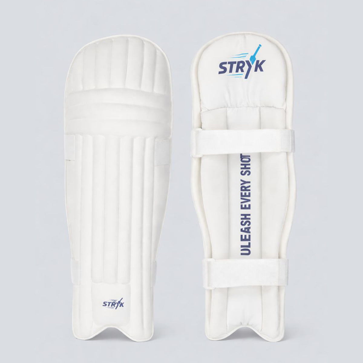 These STRYK cricket batting leg guards are essential protective equipment designed to keep you safe at the crease. Featuring premium PU facing material, these leg guards offer excellent durability and resistance against fast deliveries. The high-density foam padding provides superior shock absorption, protecting your legs from impact whilst maintaining flexibility for comfortable movement. Engineered with a lightweight construction, these guards won't weigh you down during long innings, allowing you to focus on your batting technique. The comfortable fit ensures they stay securely in place throughout your game, with adjustable straps that accommodate different leg sizes. The classic white design suits all cricket formats, from practice sessions to competitive matches. Whether you're facing pace or spin, these leg guards deliver the protection and comfort that serious cricketers demand. Suitable for men's cricket at all levels, from club matches to professional play.