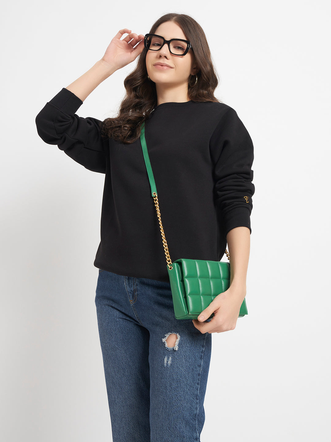 ZYBE Solid Crew Neck Sweatshirt for Women